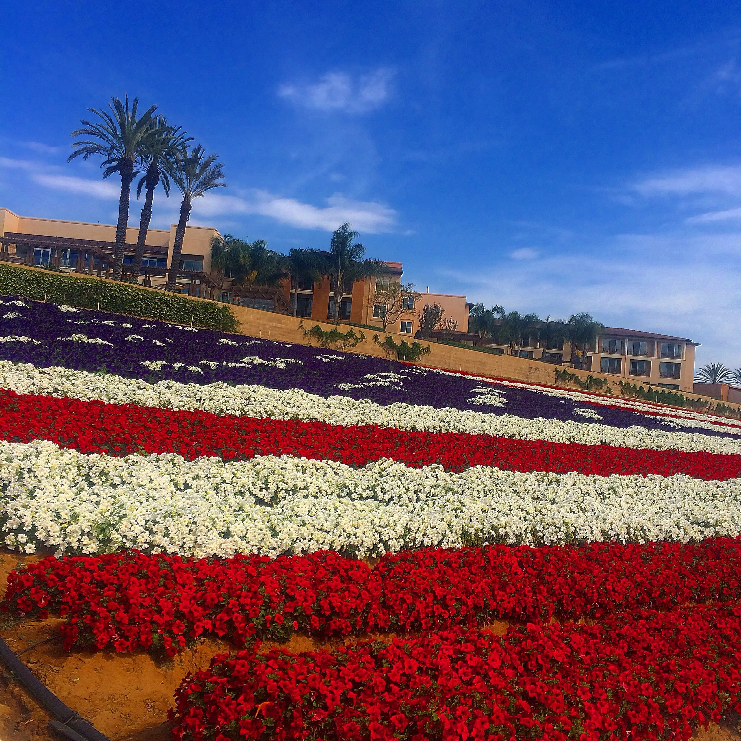 Patriotic florals at the Flower Fields, next to the Carlsbad Premium Outlets.